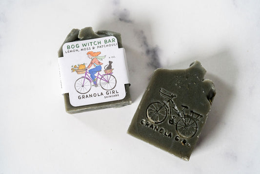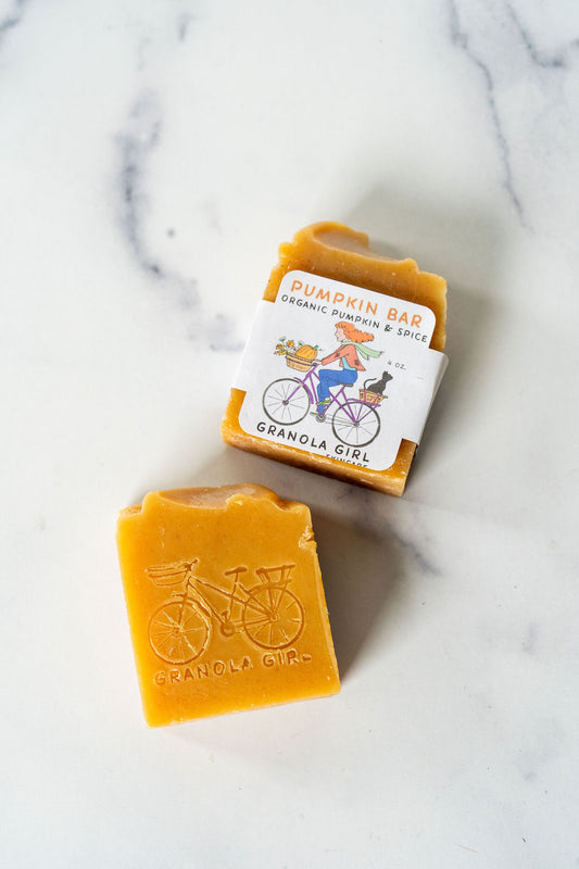 Our soaps are 100% all natural, palm free and cruelty free, made with only pure essential oils and natural colors. They contain a large proportion of olive oil for a high-quality, long lasting bar. Creamy cocoa butter and unrefined fair trade shea butter help condition the skin in each bar. Some bars contain coconut milk, which adds a silky slip and conditioning lather to all our soaps, and most of our bars are vegan. Granola Girl soaps are cold processed, made by hand the old-fashioned way in small batches and cured for a month before sale. We're proud to offer products that are guilt and chemical free!